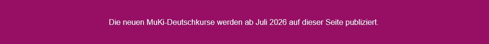 Lernen, lachen und neue Kontakte knüpfen: Unsere Mutter-Kind-Deutschkurse (MuKi) richten sich an Mütter mit vorschulpflichtigen Kindern. Während die Kinder betreut werden, haben die Mütter Zeit, Deutsch zu lernen, ihre Sprachkenntnisse zu verbessern und aktiv am gesellschaftlichen Leben teilzunehmen. Für weitere Informationen oder Fragen wenden Sie sich bitte direkt an die Fachstelle Bildung unter fachstelle.bildung@koeniz.ch oder telefonisch unter 031 970 95 81.