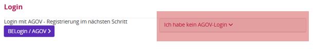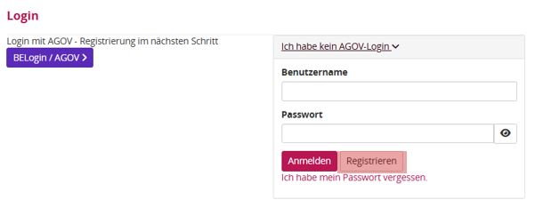Registrierung via BELogin / AGOV